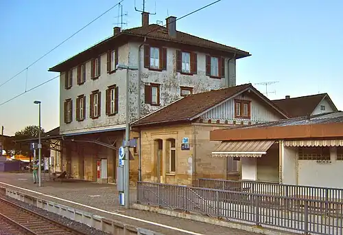 Gaildorf West station is a railway station in the municipality of Gaildorf, located in the Schwäbisch Hall district in Baden-Württemberg, Germany.