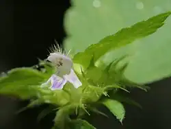 Galeopsis bifida is an annual plant native to Europe and Asia but now found in Canada and the northeastern, midwestern parts of the United States. It has many common names such as bifid hemp-nettle,[2] split-lip hemp-nettle, common hemp-nettle,[2] and large-flowered hemp-nettle.[2] The genus name means weasel-like, referring to the corolla of the flower. It is often confused with other species of Lamiaceae such as Mentha arvensis, Dracocephalum parviflorum and Stachys pilosa.[3]