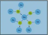 In the Ga2S3 crystal shown in (figure 2 below) it should be noticed that two out of three sulfur atoms (S1 and S2) are each bound to three gallium atoms. These sulfur atoms have two normal covalent bonds to two of the gallium atoms. The third Ga-S bond is dative or coordinate covalent (one of the atoms provides both electrons). The third sulfur atom, S3, is bound to just two gallium atoms and is thought to be a bridging atom. The average sulfur coordination number is greater than two; sulfide glasses usually have coordination numbers less than two. Experimentally, Ga2S3 has not been observed in a glassy state. There exists however a GaS4 unit within the Ga-S crystal which has been noted as the glass former. The La-S bond is ionic and likely to be a network modifier. By adding an ionic sulfide to the crystal, like La2S3, it is possible to modify the crystalline Ga2S3 into a vitreous structure.