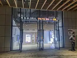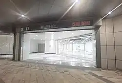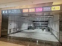 Gangxia North station is an interchange station for Line 2, Line 10, Line 11 and Line 14 of the Shenzhen Metro. Line 2 platforms opened on 28 June 2011,[1] Line 10, Line 11[2] and Line 14 platforms[3][4] opened on 28 October 2022.[5] Measuring 220,000 meters square, it is 1.6 times as large as the nearby intermodal Futian station.[6] It is the second four-line interchange station in the Shenzhen Metro after Chegongmiao station.