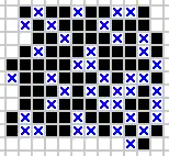 A pattern, for a given cellular automaton, consists of a finite set of cells together with a state for each of those cells.[6] A configuration contains a pattern when the states of the cells in the pattern are the same as the states of the same cells in the configuration (without translating the cells before matching them). The definition of predecessors of configurations can be extended to predecessors of patterns: a predecessor of a pattern is just a configuration whose successor contains the pattern. An orphan, then, is a pattern with no predecessor.[6]