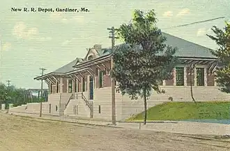 The Gardiner Railroad Station is a historic former railroad station at 51 Maine Street in Gardiner, Maine. It was built in 1911 by the Maine Central Railroad, and was in use as a station until the 1950s. It has since seen a variety of adaptive commercial uses. A distinctive example of Romanesque architecture, it was added to the National Register of Historic Places on October 29, 1982.[1]