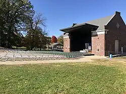 The MacAllister Center for the Performing Arts, originally known as the Amphitheatre, was constructed in the mid-1920s. It lies southeast of the Arts Center and consists of a covered stage with outdoor bench and lawn seating. It has hosted a number of musical and theatrical shows, including the first production of Starlight Musicals in 1944.[24] Local Shakespeare groups have often performed at the center.[25] The Indianapolis Symphony Orchestra has regularly scheduled one of its Symphony in the Parks events each summer, and the annual America We Remember music and fireworks show is well-attended.
