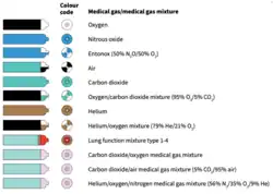 - ^ Srivastava, U. (September 2013). "Anaesthesia gas supply: gas cylinders". Indian J Anaesth. 57 (5): 500–6. doi:10.4103/0019-5049.120147. PMC 3821267. PMID 24249883.