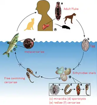 - ^ a b Tang, Ze-Li; Huang, Yan; Yu, Xin-Bing (2016-07-06). "Current status and perspectives of Clonorchis sinensis and clonorchiasis: epidemiology, pathogenesis, omics, prevention and control". Infectious Diseases of Poverty. 5 (1): 71. doi:10.1186/s40249-016-0166-1. ISSN 2049-9957. PMC 4933995. PMID 27384714.