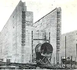 Beyond this, the original design of the locks had yet another safety feature, emergency dams that could be swung across the locks at the upper end of every flight. These consisted of swinging bridges, from which girders were lowered to the lock floor; steel shutters could then be run down these girders to block the flow of water.[8] Never used, they were removed in the 1950s.[6][15][16][17] [18]