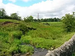 Loch Brand or Bran was the name by which Boghall Loch was formerly known. The loch, drained in 1780, is one of the main sources of the Powgree Burn and lay on the lands of Boghall and Hill o'Beith. In the bottom of the loch piles, stakes of oak or elm have been found and it is thought that these may be the remains of crannogs.[4][5] The site is now represented by a low, marsh and reed covered area (less than 2 ha in extent) centred at NS 358 543 on the OS map.[6]
