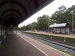 In 2008, the State Government announced a plan to rebuild the Gawler line, in preparation for the line to be electrified with the federal government also to provide funding.[5] The track was removed, and the track bed, sleepers and track renewed. Dual gauge sleepers were laid to allow for the line to be converted to standard gauge at a future date. The line was closed between North Adelaide and Mawson Lakes for four months from June 2010 for this work to be performed, and between Mawson Lakes and Gawler Central stations for seven months from September 2011.[6][7][8] Following the withdrawal of federal government funding by the then newly elected Abbott Liberal-National government, the electrification was postponed in October 2013.[9]