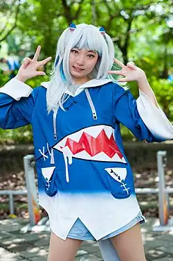 Gawr Gura (がうる・ぐら, Gauru Gura) is a retired virtual YouTuber who was affiliated with Hololive English.[2][3] She debuted on September 13, 2020, and has since become the most subscribed virtual YouTuber, amassing over 4 million subscribers.[4][5][6] She is a member of Hololive English – Myth (stylized as HoloMyth), the first generation of English language performers for Hololive, alongside Takanashi Kiara [ja] (小鳥遊キアラ), Mori Calliope, Ninomae Ina'nis [ja] (一伊那尓栖), and Amelia Watson.[7] Her livestreams focused on entertainment, and primarily consisted of Let's Plays, karaoke, and chats with the audience. Gura is often called "Same-chan" in Japan, same (サメ) meaning shark.[8] On April 15, 2025, she announced that she would graduate from Hololive; her final stream, a short 3D concert, was held on May 1.