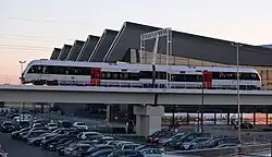 Pomorska Kolej Metropolitalna (PKM, the 'Pomeranian Metropolitan Railway) connects Gdańsk Lech Wałęsa Airport with Wrzeszcz, Gdynia Główna railway station and downtown Gdańsk. It connects to the Fast Urban Railway.[62]