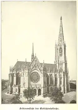 The Gedächtniskirche der Protestation (English: The Memorial Church of the Protestation) is a United Protestant church of both Lutheran and Reformed confessions in Speyer, Rhineland-Palatinate, Germany, that commemorates the Protestation at Speyer in defense of the evangelical faith, specifically Lutheranism. Built between 1893 and 1904, the church was constructed in memory of the protest that took place at the Diet of Speyer by the Protestant rulers of the Holy Roman Empire in 1529. The tower is the tallest bell tower in the whole Palatinate at 100 metres (330 ft).[1]