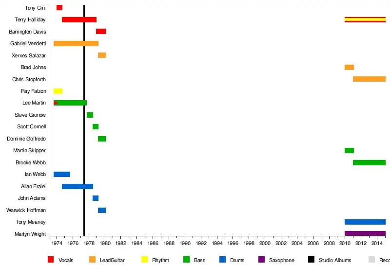 - Terry Halliday – vocals, rhythm guitar, synthesiser (1975–1978, 2010–2014)