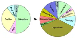 From the regional neighborhood of the Geiseltal, the equally old lignite outcrops from the Leipzig area (the Weißelster basin) or the Helmstedt area are of particular importance. Although there are no vertebrate remains here, countless floristic finds are known. For example, macro-remains in the form of conifer cones and palm leaves are found in the open-cast mines near Helmstedt, while numerous leaf finds of dicotyledonouss come from the Profen open-cast mine.[37] The general vegetation history determined on the basis of the microflora largely corresponds to that of the Geiseltal.[34] Vertebrate sites of the same age are not known from the immediate region. However, the Walbeck Fossil Deposit in the northwest of Saxony-Anhalt is one of the most extensive mammal communities in the world from the Middle Palaeocene period almost 60 million years ago. The fauna, comprising several thousand bone and tooth remains, differs from that of the Geiseltal in the dominance of prehistoric mammals from the groups of Procreodi, "Condylarthra" or Leptictida, while representatives of more modern, still existing lineages such as the primates occur rather rarely or are completely absent, as in the even-toed ungulates and odd-toed ungulates. Walbeck thus represents an important testimony from the early phase of radiation of mammals shortly after the extinction of the dinosaurs.[144][145]