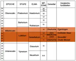 - ^ a b Hartmut Haubold, Matthias Thomae: Stratigraphische Revision der Wirbeltierfundstellen des Geiseltales. In: Hallesches Jahrbuch für Geowissenschaften. 15, 1990, p. 3–20.