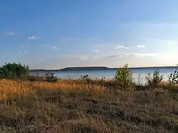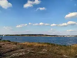 The Geiseltal, a peripheral area of the Central German Lignite Mining Area, is located about 20 km south of Halle (Saale) and about 10 km southwest of Merseburg in Saxony-Anhalt. It extends over a length of 15 km from west-northwest to east-southeast and over a width of 0.5 to 5 km. In the north it borders on the flat Merseburg red sandstone plateau, in the south on the Müchelner shell limestone plateau of the Querfurt-Freyburger Mulde. The River Geisel, which gives the valley its name, flows through the Geiseltal. It rises in St. Micheln near Mücheln from one of the largest springs in central Germany and drains after 19 km in Merseburgd via the Gotthardtsteiche into the Saale. Its catchment area is about 35 km².[1]