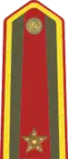 | Generál | Plukovník | Podplukovník | Major | Štábní kapitán | Kapitán | Nadporučík | Poručík | Podporučík |