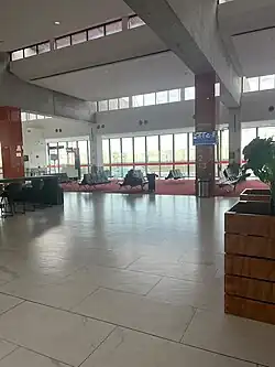 The passenger terminal underwent a comprehensive renovation and expansion in 2021. The two-story concrete structure, covering a total area of 7,538 square metres (81,140 sq ft), is now capable of handling up to 1 million passengers annually. The lower level encompasses the check-in area, an arrivals hall with a baggage claim area, immigration and customs facilities, car rental services, taxi stands, and snack bars. The upper floor houses the security checkpoint and the departures concourse, featuring a commercial area, a VIP lounge, and four gates, one of which has a jet bridge.