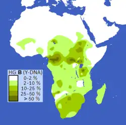 - ^ Batini C, et al. (September 2011). "Supplementary Data: Signatures of the Preagricultural Peopling Processes in Sub-Saharan Africa as Revealed by the Phylogeography of Early Y Chromosome Lineages". Molecular Biology and Evolution. 28 (9): 2603–2613. doi:10.1093/molbev/msr089. hdl:10400.13/4486. ISSN 0737-4038. OCLC 748733133. PMID 21478374. S2CID 11190055.