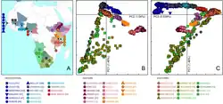 - ^ a b c d e f g h i j k l m n o p q r s t u v w x y Pfennig A, et al. (29 March 2023). "Evolutionary Genetics and Admixture in African Populations". Genome Biology and Evolution. 15 (4): evad054. doi:10.1093/gbe/evad054. OCLC 9817135458. PMC 10118306. PMID 36987563. S2CID 257803764.