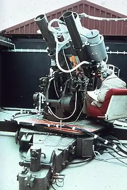 In cooperation with the German Test and Research Institute for Aviation and Space Flight (DFVLR, today's DLR), a first laser distance measuring system consisting of an anti-aircraft gun carriage and a ruby laser, was put in operation in 1972. With that, on 8 April 1973, the distance to a satellite (GEOS-1) was measured for the first time in Germany by laser. But only with the following, computer-adjusted systems SRS (Satellite Ranging System, 1977–1991) and WLRS (Wettzell Laser Ranging System, since 1991) large numbers of routine observations became possible. In addition, distances to the reflectors located at the Moon were already measured with the WLRS.