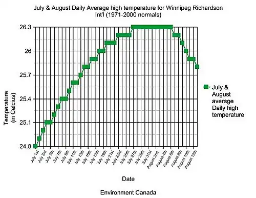 - ^ "Winnipeg Richardson International A, Manitoba". Canadian Climate Normals 1991–2020. Environment and Climate Change Canada. Retrieved 11 June 2024.
