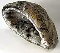 Geodes are found in southeast Iowa and are the official state rock. They consist of grey to pink cobbles within limestone that when cut or smashed open reveal a hollow crystal-filled interior. Geodes are common around Geode State Park in Henry County.[18]