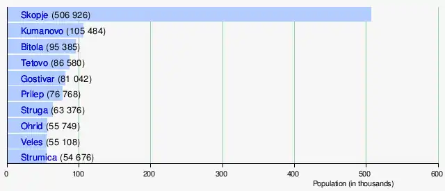 - ^ "General and Regional Statistics". State Statistical Office of the Republic of Macedonia. Archived from the original on 13 November 2010. Retrieved 31 August 2010.