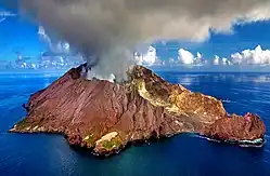 A line of undersea volcanoes extends out along the Kermadec Ridge. Whakaari / White Island, in the Bay of Plenty, represents the southern end of this chain and is a very active andesitic volcano, erupting with great frequency. It has the potential to cause a tsunami in the Bay of Plenty, as does the dormant Mayor Island / Tūhua volcano.