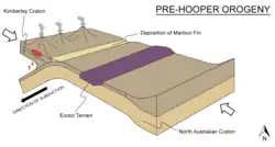 Halls Creek Orogeny is the first mountain-building event that affected all three zones of the Lamboo/Hooper Complex. It was caused by the convergence forces experienced at the plate margins, and eventually began to suture the Kimberley Craton to the North Australian Craton.[2][11]