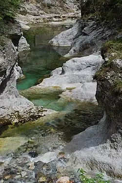 The highest mountain peaks in the geopark are Obir, Petzen and Koschuta. The special geological situation with exceptionally deep valleys results from the contact of several tectonic plates at the Periadriatic Seam.[2]