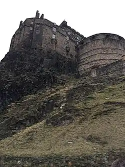 After Edinburgh Castle was recovered from William Kirkcaldy of Grange in May 1573, George Douglas was appointed its Captain or keeper by his half-brother Regent Morton.[2][3] George Douglas supervised the rebuilding of part of the back wall and other repairs, buying lime, sand, slate and glass.[4] Part of the running expenses, or "sustenation" of the castle was paid to Douglas from the customs of Edinburgh town by Robert Gourlay.[5] Parkhead is credited with building the half-moon battery at Edinburgh castle, the Historie of King James the Sext records that Regent Morton appointed him captain, and caused "masonis to begin to redd (clear away) the bruisit wallis, and to repaire the foirwark to the forme of ane bulwark, platt and braid above, for the resett and ryving (receiving) of many canonis."[6][7] Some building accounts from this work survive.[8]
