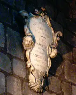A warrant was issued for Marsh's arrest for heresy by Edward Stanley, 3rd Earl of Derby. Justice Barton of Smithills Hall in Bolton sent servants to arrest him at his mother's house, but Marsh gave himself up at the hall. After being "examined" at Smithills, according to local tradition, Marsh stamped his foot so hard to re-affirm his faith that a footprint was left in the stone floor.[3] While being questioned at Lathom House by the Earl of Derby it was thought that he could be made to conform and he was held in reasonable comfort. Marsh, however resisted the efforts to make him submit and when he refused recant was taken to Lancaster Gaol where he was brought for trial at the Quarter Sessions. For nearly a year, Marsh remained in Lancaster Gaol where he read from the Bible and prayed with townsfolk gathered outside his window until George Cotes, the Catholic Bishop of Chester intervened. Sympathisers offered support and priests tried to convert him. When statutes against heresy were enacted by parliament Marsh was taken to the gaol at Northgate, Chester.[1][4] He stood trial under Bishop Cotes in the Lady Chapel of Chester Cathedral.[5] Marsh refused to convert to Roman Catholicism, despite being given one last chance to recant while being tied to the stake at which he was about to be burned.[6] His imprisonment is documented in Foxe's Actes and Monuments.[7] Marsh's follower and brother-in-law Geoffrey Hurst, a Shakerley nail maker, was also imprisoned at Lancaster but was saved from execution by Queen Mary's death.[1]