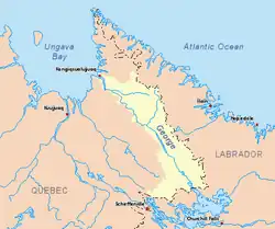 George River (Inuktitut: Kangirsualujjuap Kuunga, 'River of the Great Bay'; Naskapi: Mushuan Shipu, 'River without Trees'; Innu: Metsheshu Shipu, 'Eagle River'),[2] formerly the East[a] or George's River,[3] is a river in northeastern Quebec, Canada, that flows from Lake Jannière mainly north to Ungava Bay.