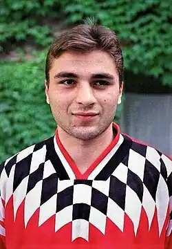 Georgi Kinkladze was born on 6 July 1973 in Tbilisi, Georgia, which was then part of the Soviet Union. As a child, he lived in the Didube district of the city with his father, Robinzon (an engineer),[5] his mother Khatuna (a teacher) and his elder sister.[6] Robinzon was keen to see his son succeed as a footballer, sometimes making him walk around the family home on his knees to strengthen his legs, and enrolled him for Dinamo Tbilisi's junior side when he was six years old.[6] Khatuna disapproved of some of her husband's methods, instead taking Georgi to lessons in mtiuluri, a traditional Georgian ballet.[7] Over the next few years, Kinkladze played in Dinamo Tbilisi's youth teams, progressing as far as the reserve team, where he played alongside Shota Arveladze, who would later become his teammate at both senior and international level.[8]