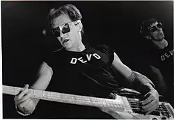 Gerald Vincent Casale (/kəˈsɔːliː/ kə-SAW-lee) (né Pizzute; born July 28, 1948) is an American musician. He came to prominence in the late 1970s as co-founder, co-lead vocalist and bass player of the new wave band Devo, which released a top 20 hit in 1980 with the single "Whip It". Casale is the main lyricist and one of the primary composers of Devo's music, as well as the director of most of the band's music videos.[4] He is one of only two members (along with lead singer and keyboardist Mark Mothersbaugh) who have been with Devo throughout its entire history. Casale's brother Bob also performed with the band until Bob's death in 2014.