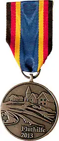 - ^ a b c "Gemeinsamer Erlass des Bundesministers des Innern und des Bundesministers der Verteidigung über die Stiftung der Einsatzmedaille „Fluthilfe 2013"" (PDF). Gesetze im Internet. Bundesministerium der Justiz und für Verbraucherschutz. Retrieved 15 July 2017.