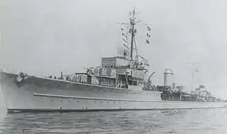 Z43 was a Type 1936B destroyer built for the Kriegsmarine (German Navy) during World War II. Completed in mid-1944, the ship spent the war in the Baltic Sea, escorting German ships, laying minefields, and bombarding Soviet forces. She participated in a minelaying operation in December 1944, where her sister ships Z35 and Z36 were sunk when they accidentally entered a German minefield. She was badly damaged by a mine on 10 April 1945, and scuttled on 3 May of that same year.