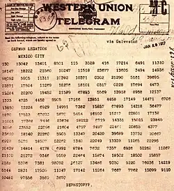 - ^ "Zimmermann Telegram". National WWI Museum and Memorial. Retrieved 2024-04-28.