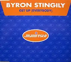 "Get Up" (also known as "Get Up (Everybody)") is a song by American house music singer-songwriter Byron Stingily, formerly of the band Ten City. A massive hit in the clubs, it was released in 1996 by Nervous Records and Manifesto Records, and samples Sylvester's 1978 song "Dance (Disco Heat)". "Get Up" was written by Stingily with the producers, Paul Simpson and Zack Toms. It reached number-one on the US Billboard Hot Dance Club Play chart in 1997[1] and was a top 20 hit in the UK, peaking at number 14, while going right up to number-one on the UK Dance Singles Chart in January 1997. The single has sold 300.000 units worldwide,[2] and in 1998, it was included on Stingily's debut solo album, The Purist. In 2007, new remixes were released.
