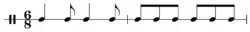 8, although there are some gigues written in other metres, as for example the gigue from Johann Sebastian Bach's first French Suite (BWV 812), which is written in 2
