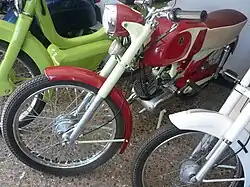 With the outbreak of the First World War and, after, the Spanish Civil War, Gimbernat was able to survive both economic conditions because their suppliers were small workshops nearby.[2] Thanks to the experience gained and good results with bicycles, in the mid-fifties they began manufacturing their first mopeds, starting by mounting the Gamo engine made in Barcelona by the renowned Parés brothers.
