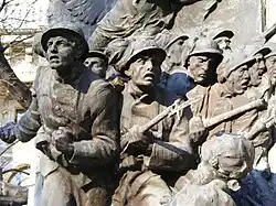 As a sculptor in 1886 he created a large statue called "Un bersagliere alla carica" (Charging bersagliere), now located in Torino on the Royal Armoury's stairway. During the years around 1900 he was very active in the field of decorative arts realizing murals and bas-reliefs. He notably realized the artistic decorations of Palazzo Marsaglia (Milan) and worked for a long time in Turin for the "Teatro Regio" (Royal Theatre) both as painter and as set designer.[1] In 1904 Ceragioli conceived and realized the FIAT's stand at the Paris Motor Show.[2] In the same years he was attending to applied arts creating several trademarks, textile designs and functional objects which later would have qualified him as a designer. Also belongs to this field of Ceragioli's activity his involvement in the elaboration of the "Manifesto programmatico per l’Esposizione Internazionale di Arte Decorativa di Torino" (Program Manifesto for the International Applied Arts' Exhibition of Torino, 1902).[1] In 1902 he established with his fellow artists Leonardo Bistolfi, Davide Calandra, Enrico Reycend and Enrico Thovez an important journal devoted to decorative arts, "L'arte decorativa moderna"; it was a monthly magazine about art and decoration of homes[3] which had an important influence on Italian decorative arts' history. In 1914 with Cesare Biscarra Ceragioli realized in Valentino Park of Torino a monument to Ascanio Sobrero.[4] After World War I his artistic activity went on both as sculptor and as painter: noticeable among this period's sculptures are an Alpino's statue in Villar Perosa and the bronze high relief conceived to commemorate dead bersaglieri of the Great War; sculpted in 1923 it was located in 1936 in the Lamarmora gardens of Turin.