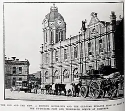 Starting in the early 1830s, traders such as Captain John Harris and Captain George E. Read set up the first trading stations along the Tūranganui river and are attributed to the founding of the town. Over the next 30 years, many more European traders and missionaries migrated to the region. In 1868, the government bought 300 hectares of land for a town site. The town was laid out in 1870 and the name changed from Turanga to Gisborne, after the then colonial secretary, and to avoid confusion with Tauranga. In 1872, Gisborne's first public school was opened and its first newspaper, the Poverty Bay Standard was established.[12] A town council was formed in 1877.[3][8]