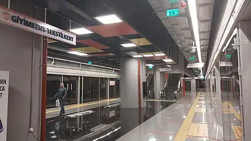 Giyimkent-Tekstilkent is an underground station on the M7 line of the Istanbul Metro.[2][3] It is located on Giyimkent Street in the Oruçreis neighbourhood of Esenler. It was opened on 28 October 2020.[4]