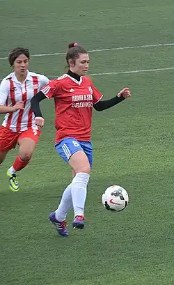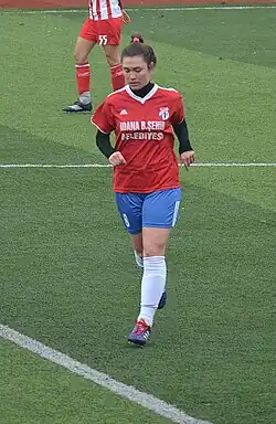 In the second half of the 2014–15 season, she was transferred by the newly established women's football side of Beşiktaş J.K., which started in the Turkish Women's Third League.[7] Scoring 21 goals in 10 appearances, she played an important role for her team's promotion to the Women's Second League for the 2015–16 season.[8] Following her team's promotion, she played in the 2016–17 Turkish Women's First Football League.[1] She enjoyed the champion title of her team in the 2018-19 season.[1] She took part at the 2019–20 UEFA Women's Champions League - Group 9 matches.[9][10][11] Following her team^s champion title of the 2020-21 Turkcell League, she played in two matches of the 2021–22 UEFA Women's Champions League qualifying rounds.[12][13]