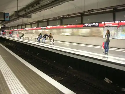 Glòries is a station in the Barcelona Metro network, at the boundary between the Eixample and Sant Martí districts of Barcelona. It is served by TMB line L1. The station is named after the nearby Plaça de les Glòries Catalanes.