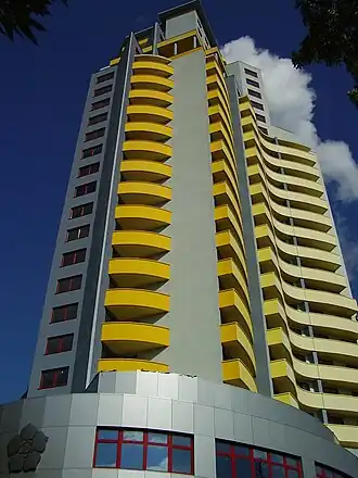 Glória is a high-rise residential building located on the Záhradnícka Street in the Ružinov district of Bratislava, Slovakia. The construction stands at 100 metres (328 ft) tall with 29 floors and was built between 2004 and 2006.