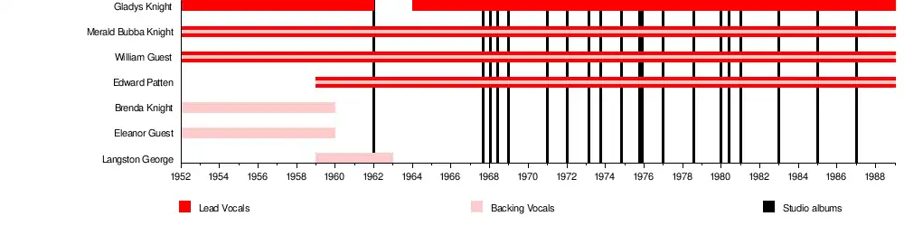 - Gladys Knight – lead vocals (1952–1962, 1964–1989)