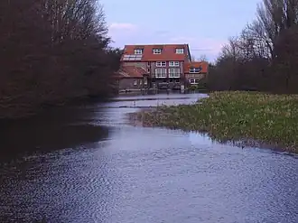 The first recorded miller at Glandford was William Cook in 1819.[2] A letter written by him in 1824 records that the tides running up the Glaven from the nearby coast would pass through the water wheel into the mill dam beyond. This happened virtually daily until 1823, and in earlier times it is probable that in times of high tides, sea water came in as far as Bayfield. When the present mill was first built in 1907, it was owned by Sir Alfred Jodrell who lived at Bayfield Hall.[2] He is recorded as keeping the watermill well maintained. The mill finally ceased operation some time around the Second World War. In 1969 the mill was sold, and by then the waterwheel had been removed. The mill building was used as a farm store. The watermill has since been converted into a residence and in 1971 was also used in the running of a fish-farming business.[2]