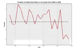 Chart of yearly table positions for Glebe Dirty Reds First Grade NSWRL